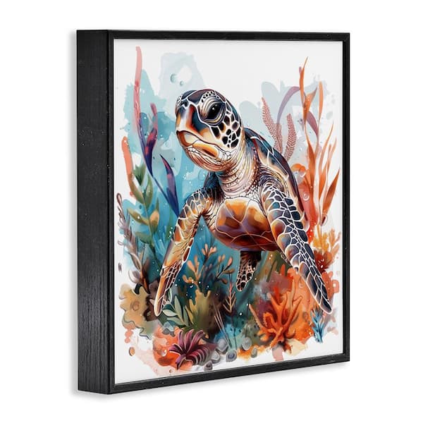 Drifting Sea Turtle by LSR Design Studio Black Framed Animal Giclee Art Print 24 in. x 24 in.