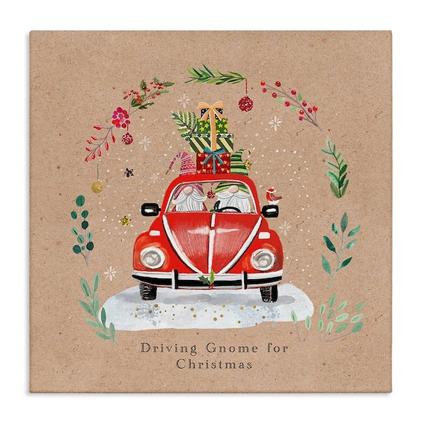 Driving Gnome For Christmas by Sally Darby 1-Piece Unframed Graphic Print Travel Poster Art Print 17 in. x 17 in.