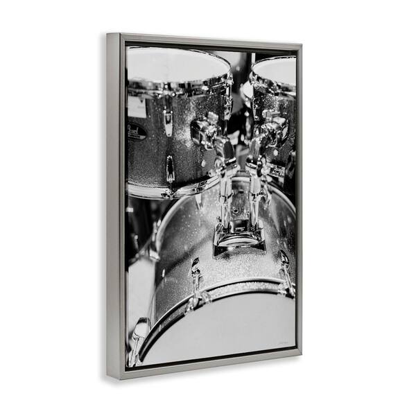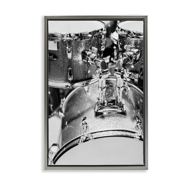 Drum Set Black & White by Jennifer Rigsby Gray Floater Frame Music Graphic Art Print 31 in. x 21 in.