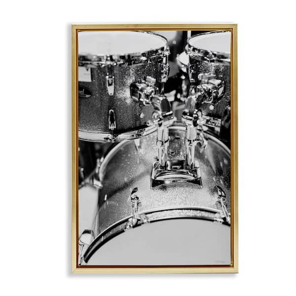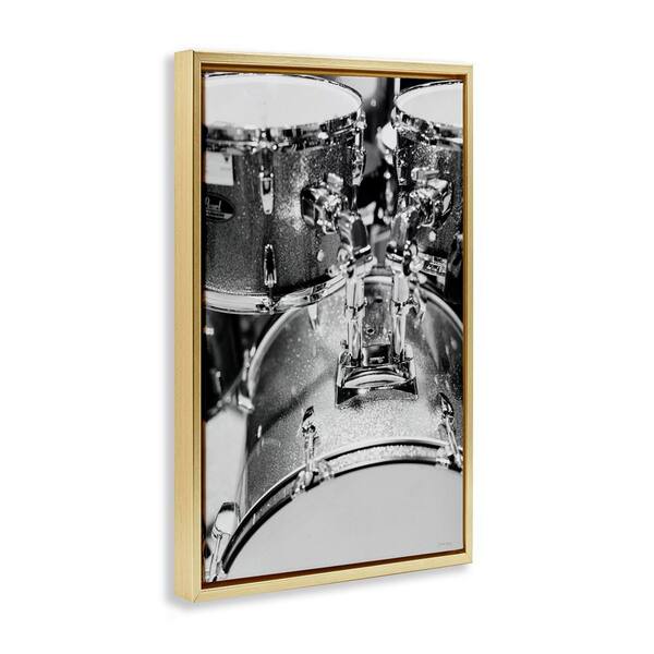 Drum Set Black and White by Jennifer Rigsby Gold Floater Frame Music Graphic Art Print 31 in. x 21 in.