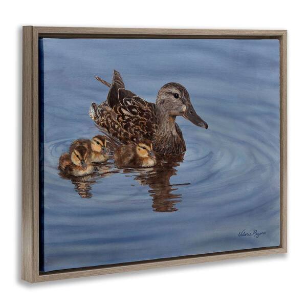 Duck Family Ripples by Valerie Rogers Brown Floater Frame Animal Graphic Art Print 25 in. x 31 in.