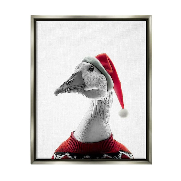 Duck in Santa Hat by Annalisa Latella 1-Piece Floater Frame Graphic Print Animal Poster Art Print 31 in. x 25 in.