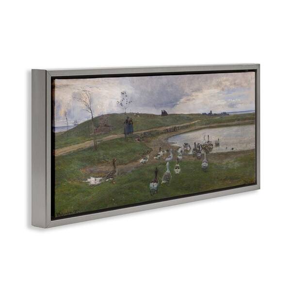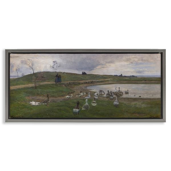 Ducks Wading in Pond by June Erica Vess Gray Floater Frame Nature Graphic Art Print 11 in. x 25 in.