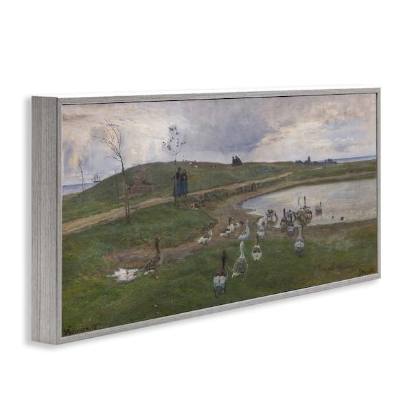 Ducks Wading in Pond by June Erica Vess Gray Framed Nature Giclee Art Print 10 in. x 24 in.
