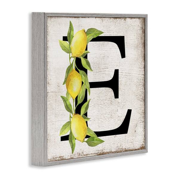 E with Lemon Letter by Creatif Belle Gray Framed Food Giclee Art Print 17 in. x 17 in.