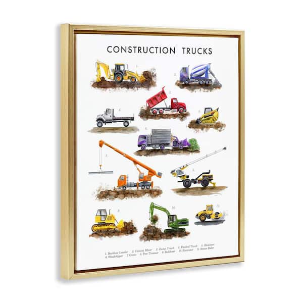 Educational Construction Trucks by Brett Blumenthal Gold Floater Frame Typography Graphic Art Print 21 in. x 17 in.