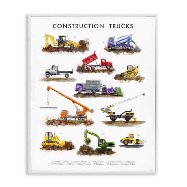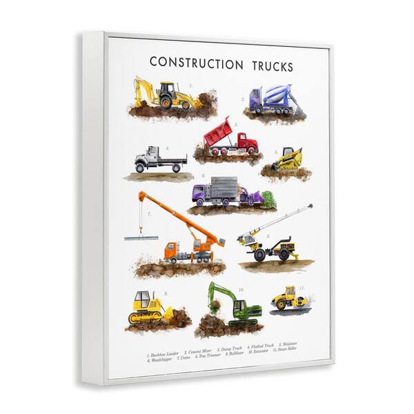 Educational Construction Trucks by Brett Blumenthal White Framed Typography Giclee Art Print 30 in. x 24 in.