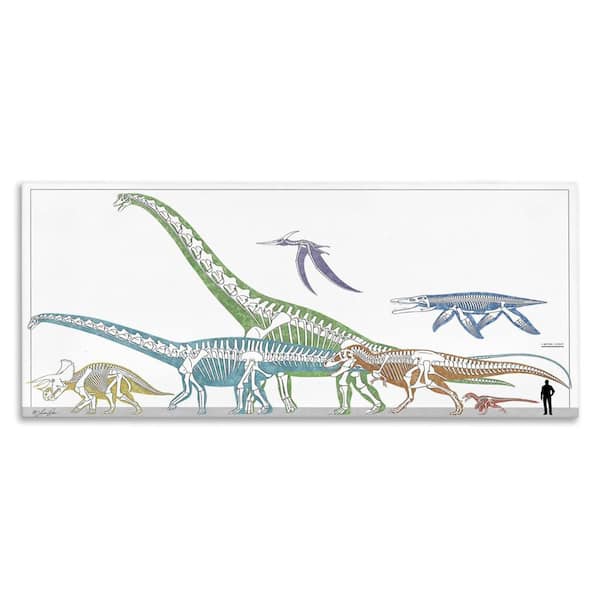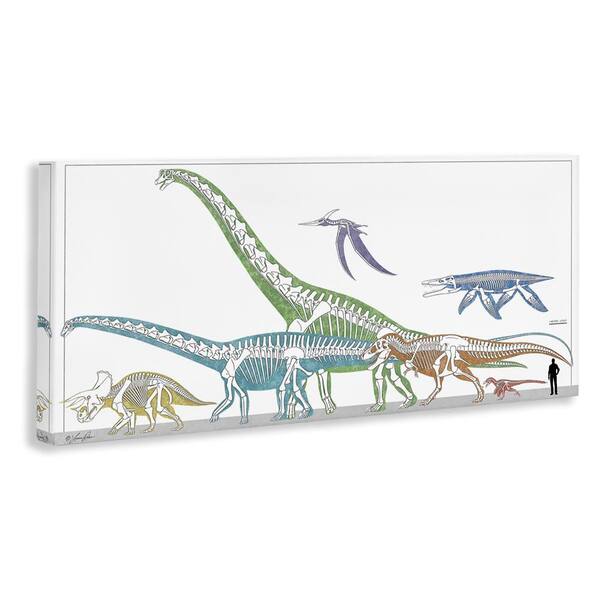 Educational Prehistoric Skeletons by Lauren Rader Unframed Animal Graphic Art Print 10 in. x 24 in.