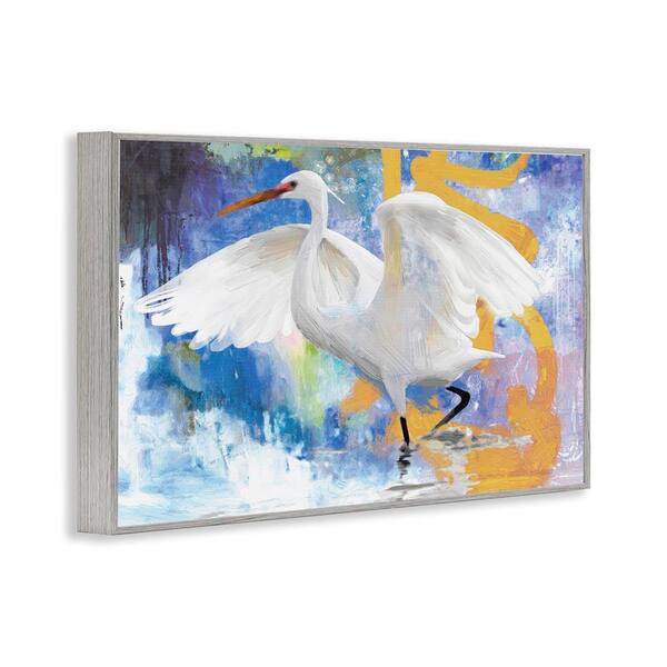 Egret & Abstract Splash by Porter Hastings Gray Framed Animal Giclee Art Print 12 in. x 18 in.