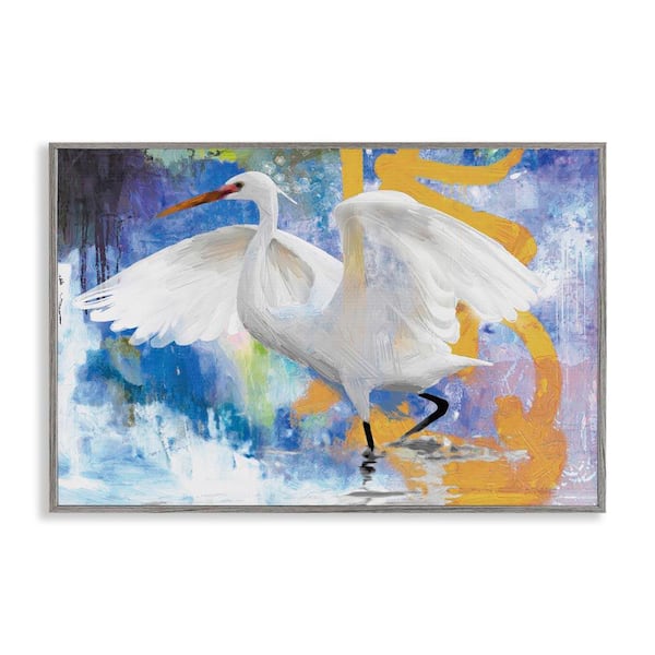 Egret and Abstract Splash by Porter Hastings Gray Framed Animal Giclee Art Print 20 in. x 30 in.