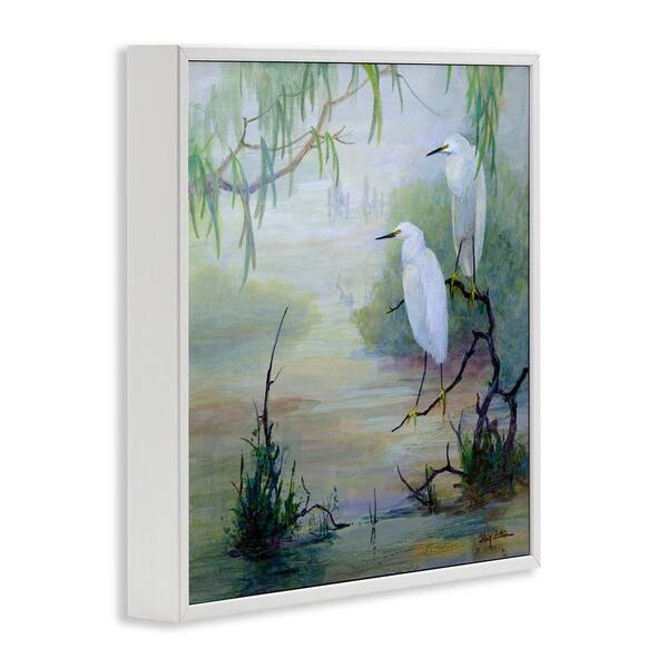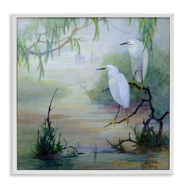 Egrets & Marshland Edge by Floy Zittin White Framed Animal Giclee Art Print 12 in. x 12 in.
