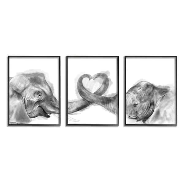 "Elephant Trunk Heart Jungle Animal Illustration" by Daphne Polselli Framed Animal Wall Art Print 11 in. x 14 in.