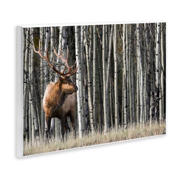 Elk Looming Out Birch Trees Forest Photograph by Danita Delimont Unframed Graphic Animal Art Print 19 in. x 13 in.