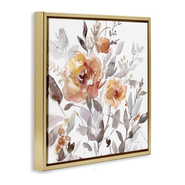 Energetic Florals on White by Carol Robinson Gold Floater Frame Nature Graphic Art Print 25 in. x 25 in.