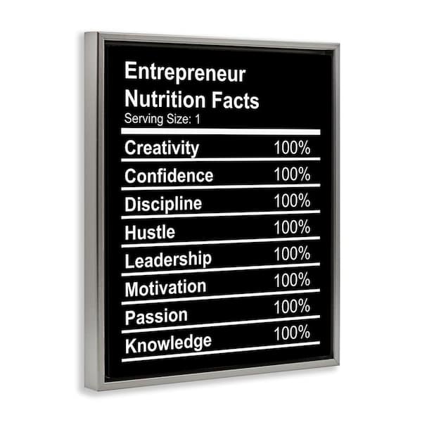 Entrepreneur Nutrition Facts by Daphne Polselli Gray Floater Frame Typography Graphic Art Print 31 in. x 25 in.