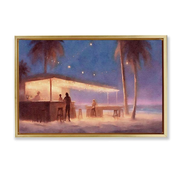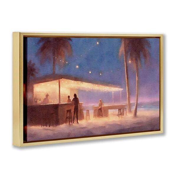 Evening Beach Bar by Noah Bay Gold Floater Frame Coastal Graphic Art Print 21 in. x 31 in.