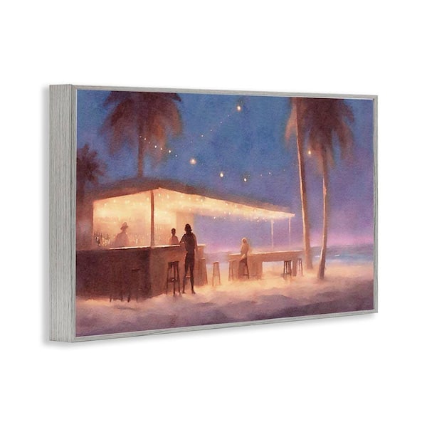 Evening Beach Bar by Noah Bay Gray Framed Coastal Giclee Art Print 20 in. x 30 in.