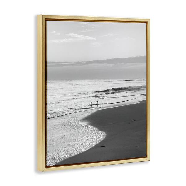 Evening Beach Stroll by Graffi tee Studios Gold Floater Frame Coastal Graphic Art Print 31 in. x 25 in.