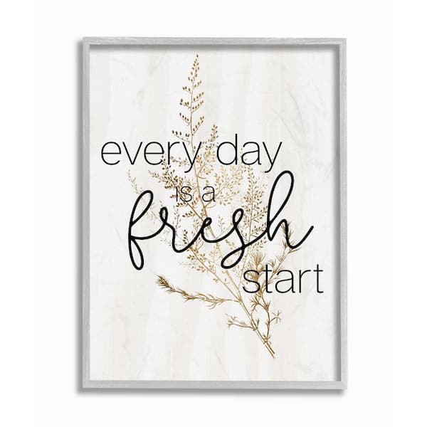 "Everyday Fresh Start Text Script Gold Black Nature" by Daphne Polselli Framed Country Wall Art Print 16 in. x 20 in.