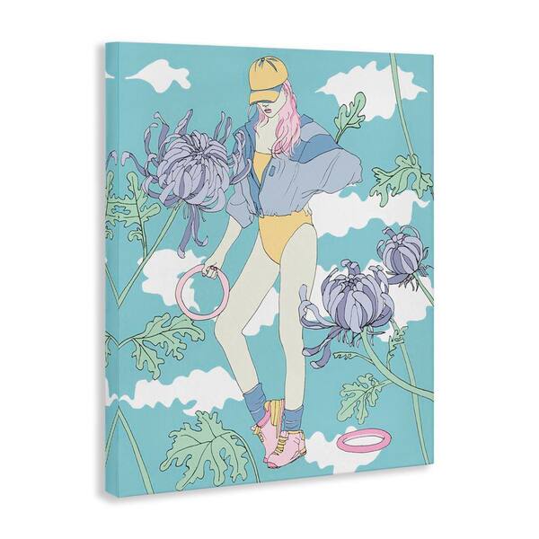 Exercise Girl with Clouds by Melissa Wang Unframed People Graphic Art Print 30 in. x 24 in.