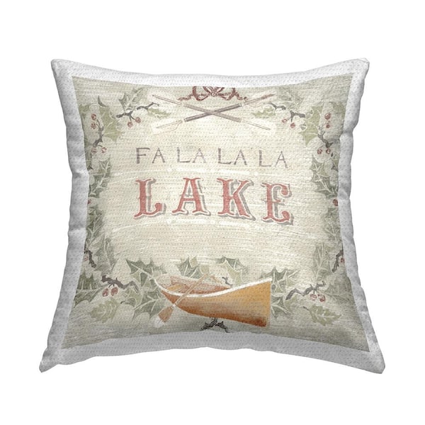 Fa La La Lake Holiday Botanical Wreath Tan Square Outdoor Throw Pillow