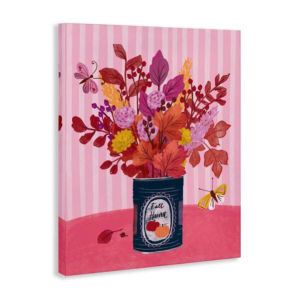 Fall Bouquet on Stripes by Be Ni La Unframed Nature Graphic Art Print 20 in. x 16 in.