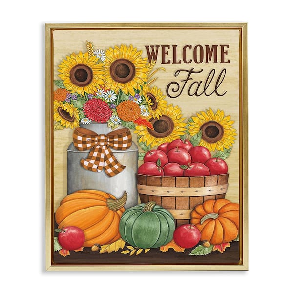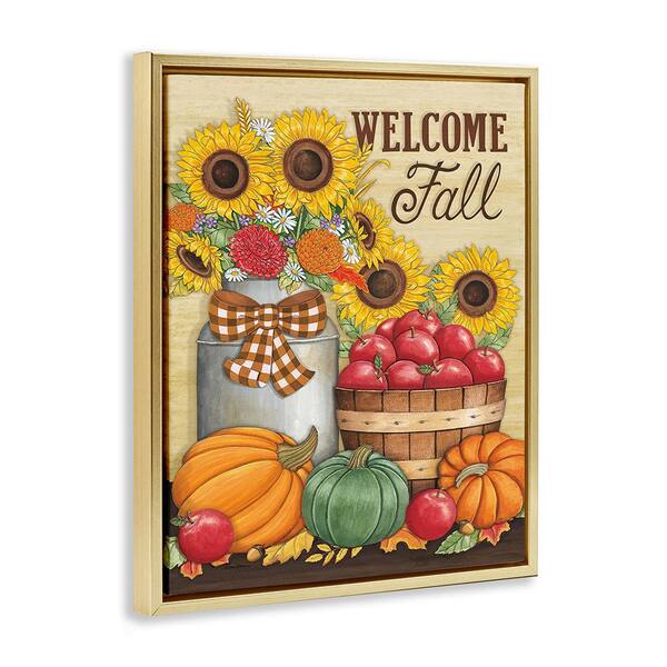 Fall Harvest Welcome Phrase by Deb Strain 1 Piece Floater Frame Graphic Print Nature Poster Art Print 31 in. x 25 in.