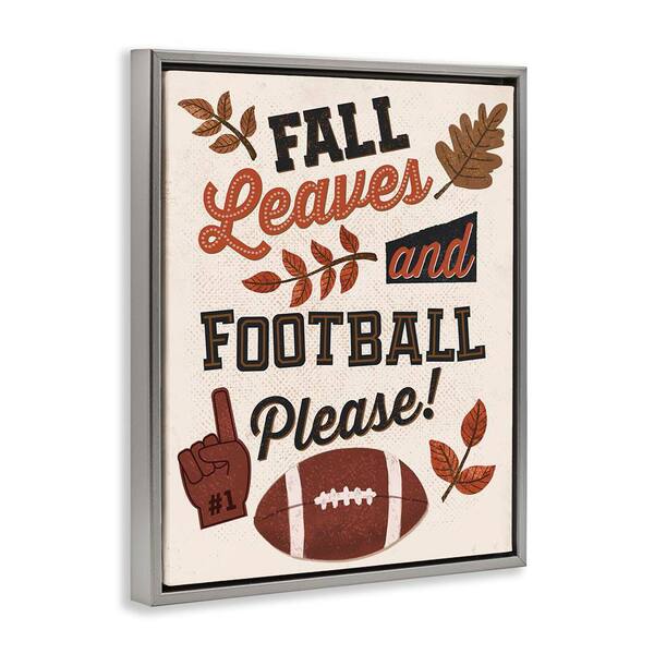 Fall Leaves and Football by Diane Labombarbe Gray Floater Frame Graphic Sports Art Print 31 in. x 25 in.