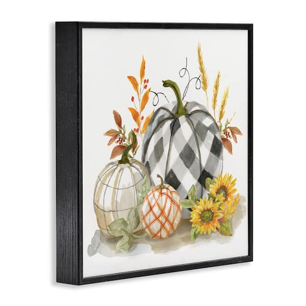 Fall Patchwork Patterned Pumpkins by Nan Black Framed Graphic Nature Art Print 12 in. x 12 in.