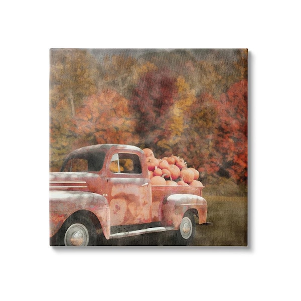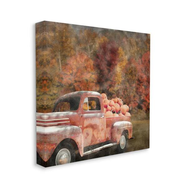 Fall Truck with Pumpkins byLSR Design Studio 1 Piece Unframed Graphic Print Travel Poster Art Print 30 in. x 30 in.