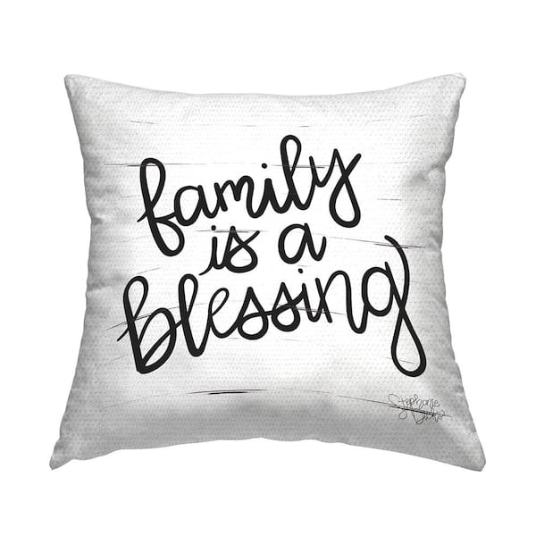 Family Is Blessing Rustic Minimal Calligraphy Sign White Square Outdoor Throw Pillow