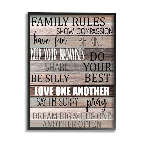 "Family Rules Text Fun Wood Grain Rustic Tan Teal" by Kimberly Allen Framed Typography Wall Art Print 16 in. x 20 in.