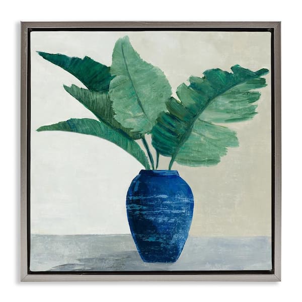Fan Palms in Vase by Jacob Q Gray Floater Frame Nature Graphic Art Print 18 in. x 18 in.