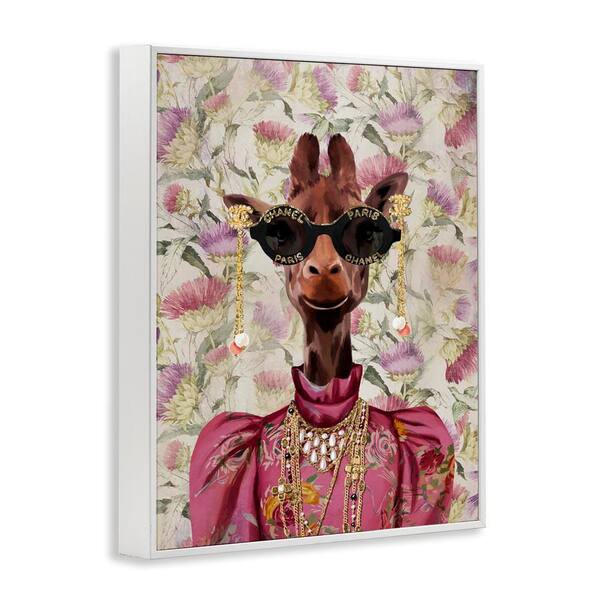 Fancy Giraffe on Florals by Svetlana Aleynikova White Framed Animal Giclee Art Print 30 in. x 24 in.