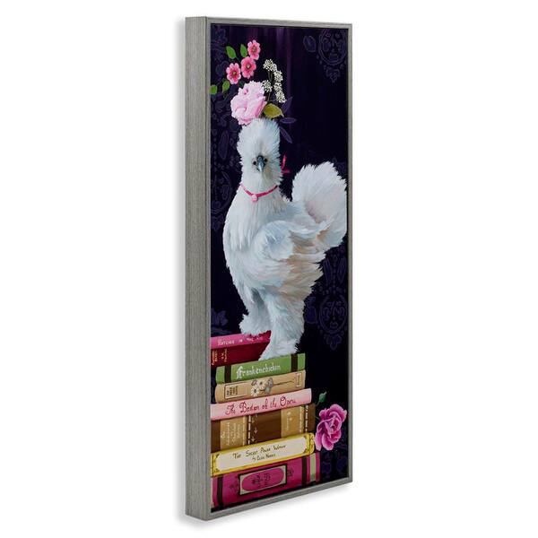 Fancy Vintage Chicken with Books by Heather Gauthier Gray Framed Animal Giclee Art Print 24 in. x 10 in.