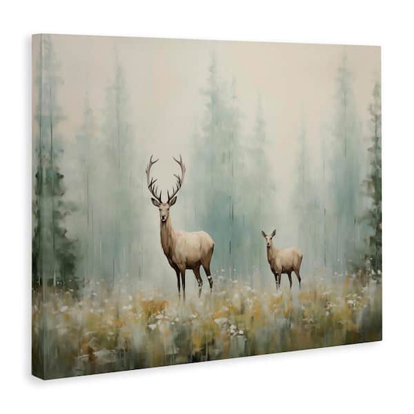 Faraway Deer in Meadow by Arlington Prints Unframed Nature Graphic Art Print 36 in. x 48 in.