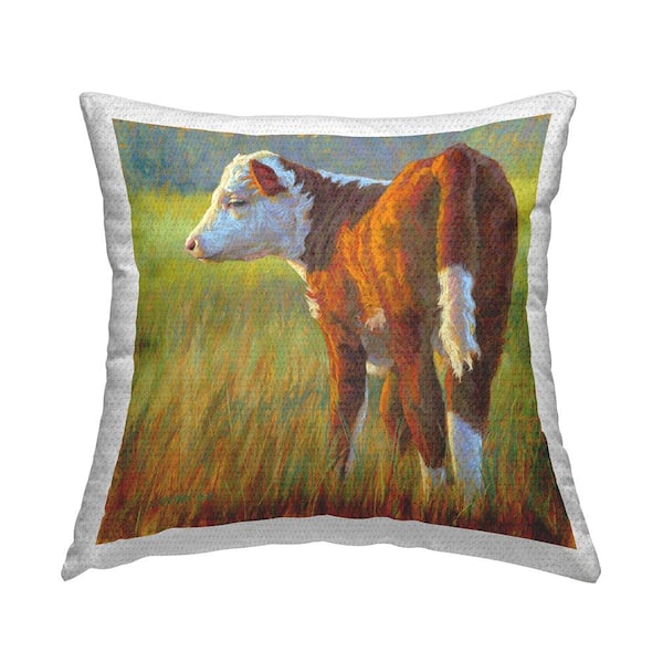 Farm Animal Cattle Grazing Multi-Color Square Outdoor Throw Pillow