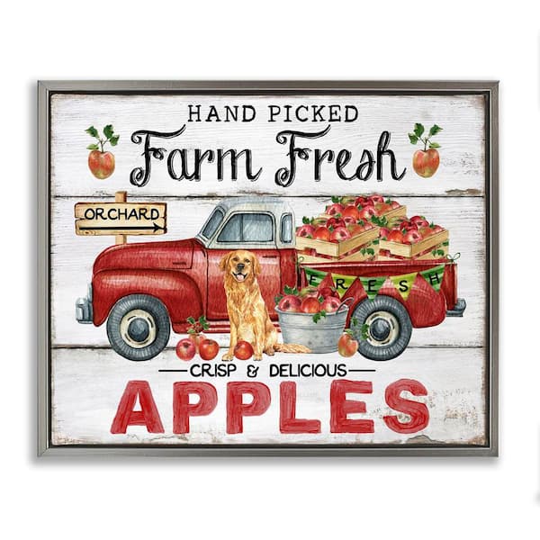 Farm Fresh Apples Truck by Creatif Belle Gray Floater Frame Nature Graphic Art Print 17 in. x 21 in.