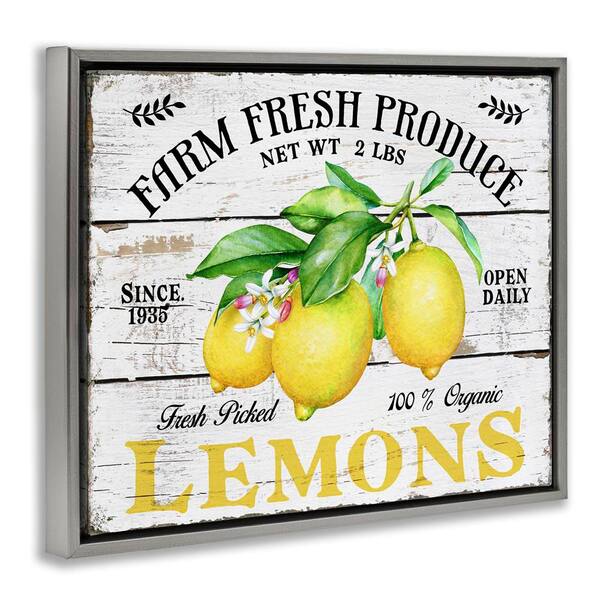 Farm Fresh Produce Lemons by Creatif Belle Gray Floater Frame Food Graphic Art Print 17 in. x 21 in.