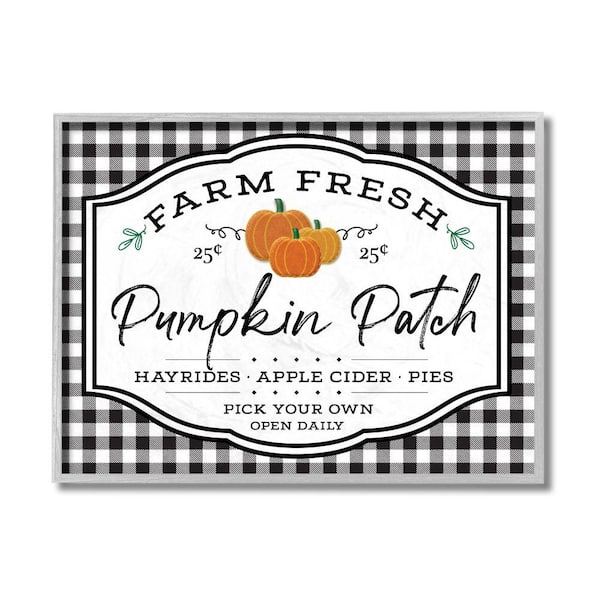 "Farm Fresh Pumpkin Patch Sign Black Checkered Plaid" by AE Design Framed Nature Texturized Art Print 16 in. x 20 in.