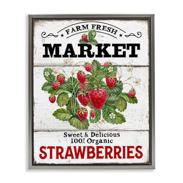 Farm Fresh Strawberries by Creatif Belle Gray Floater Frame Food Graphic Art Print 21 in. x 17 in.