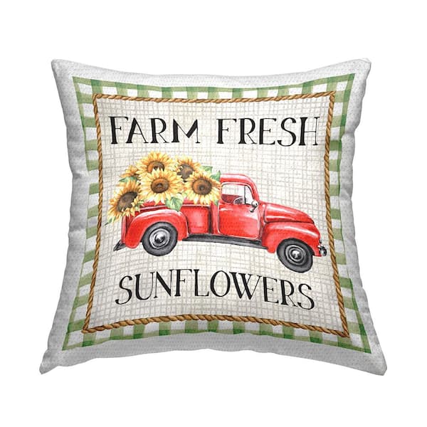 Farm Fresh Sunflowers Gingham Truck Multi-Color Square Outdoor Throw Pillow