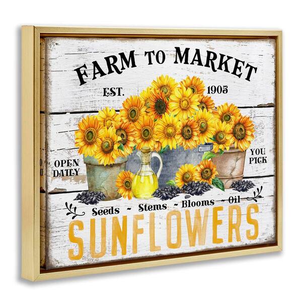 Farm To Market Sunflowers by Creatif Belle Gold Floater Frame Nature Graphic Art Print 17 in. x 21 in.