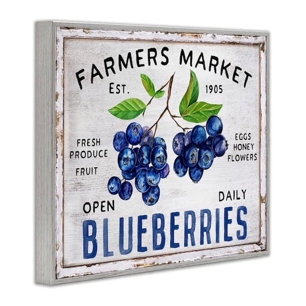 Farmers Market Blueberries by Creatif Belle Gray Framed Food Giclee Art Print 11 in. x 14 in.