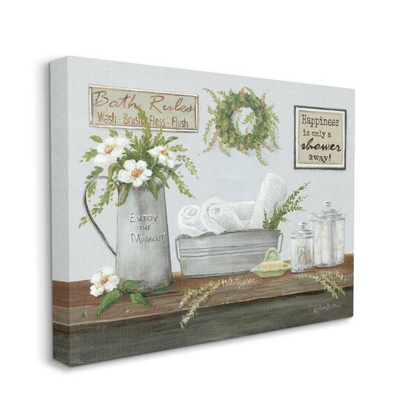 Farmhouse Bathroom Motivational by Pam Britton 1-Piece Wrapped Unframed Abstract Graphic Art Print 30 in. x 24 in.