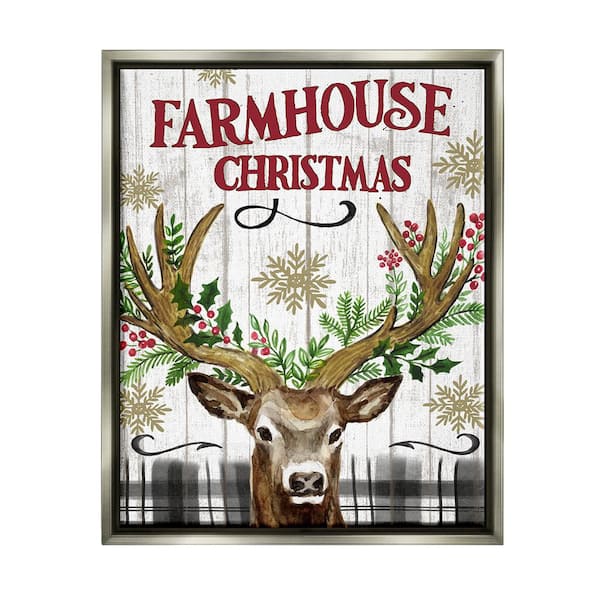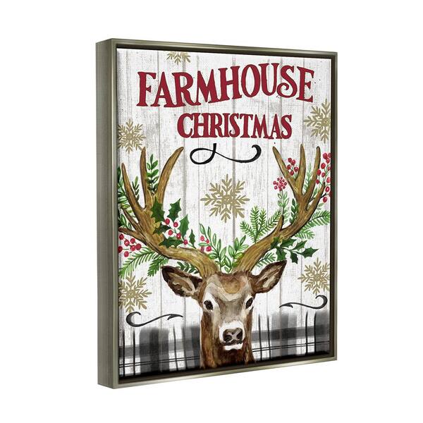Farmhouse Christmas with Plaid 1-Piece Floater Frame Graphic Print Animal Poster Art Print 31 in. x 25 in.