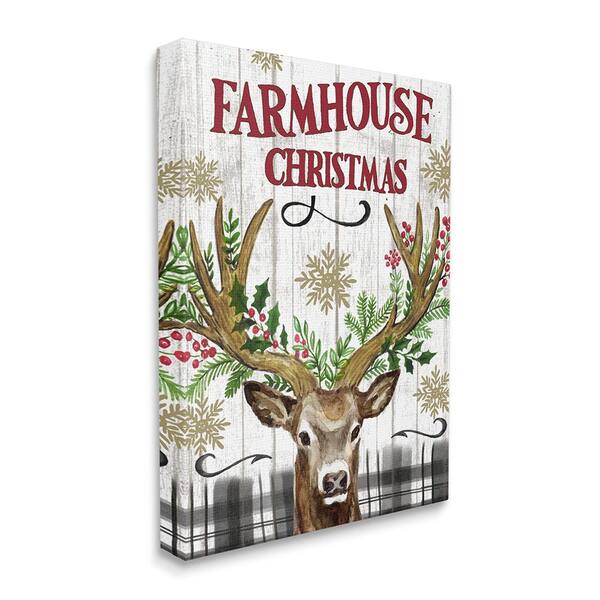 Farmhouse Christmas with Plaid 1-Piece Unframed Graphic Print Animal Poster Art Print 48 in. x 36 in.