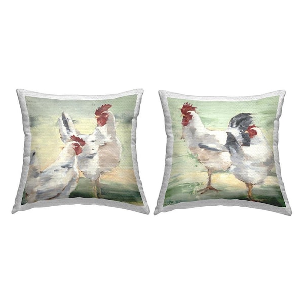 Farmhouse Hens Chickens Animals Green Square Outdoor Throw Pillow 2-Pack