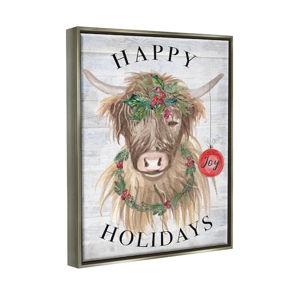Farmhouse Holiday Cow by Corinne Haig 1-Piece Floater Frame Graphic Print Animal Poster Art Print 21 in. x 17 in.
