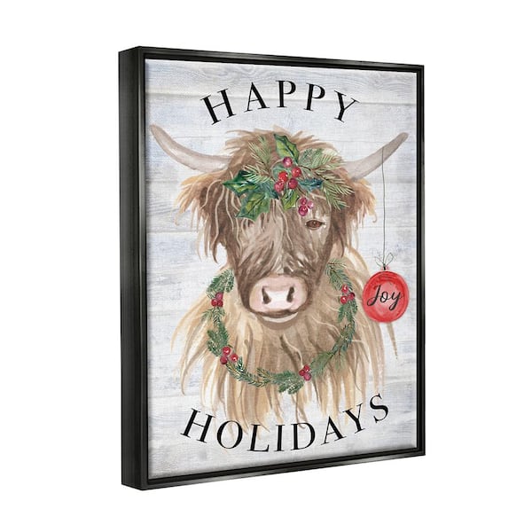 Farmhouse Holiday Cow by Corinne Haig 1-Piece Floater Frame Graphic Print Animal Poster Art Print 31 in. x 25 in.